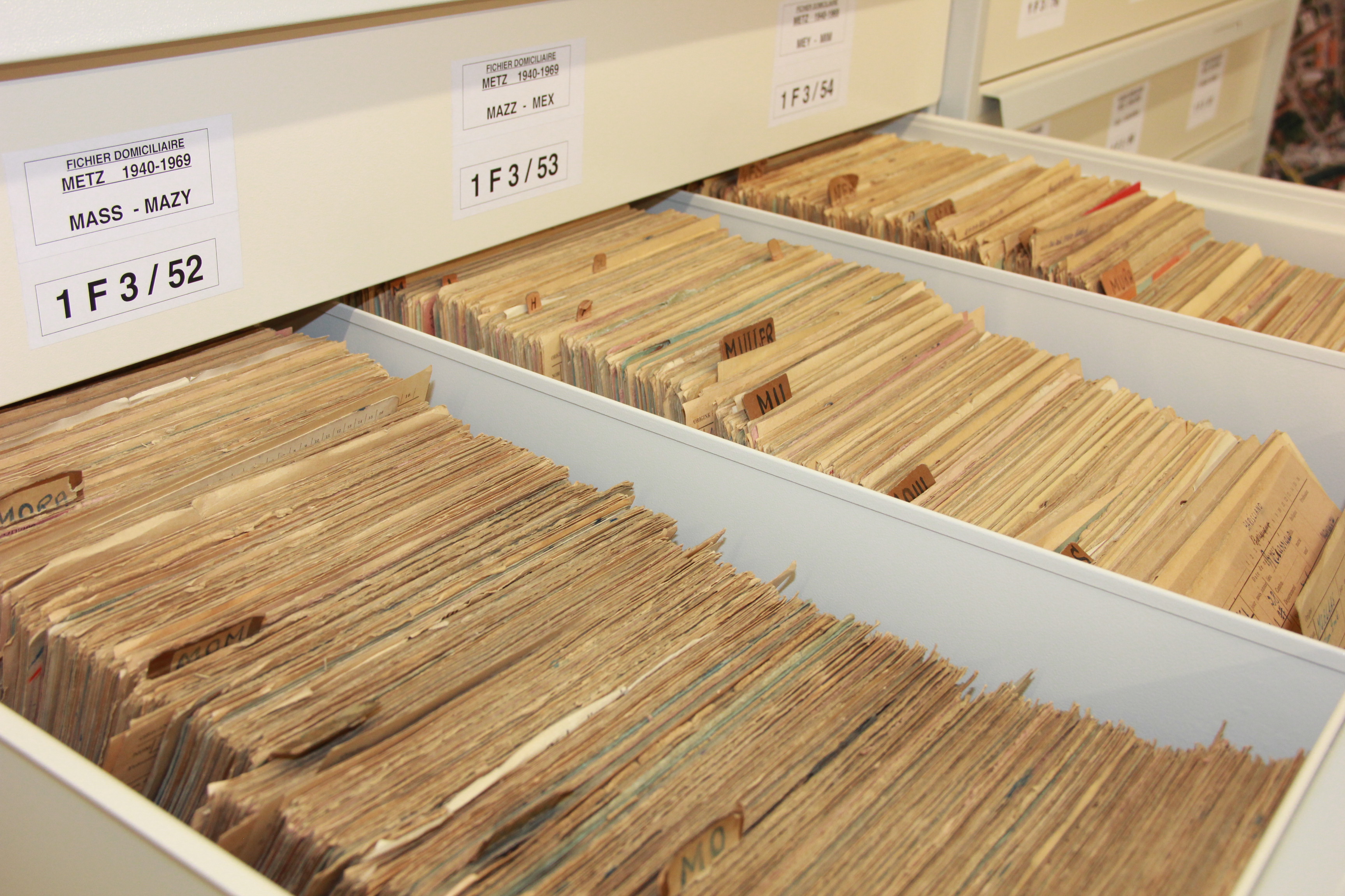 La priorité a été donnée dans un premier temps au domaine de la généalogie, avec la numérisation des registres paroissiaux et d’Etat-civil, ainsi que les tables décennales. Afin de les mettre à disposition du plus grand nombre des chercheurs, ces documents ont fait l’objet d’une mise en ligne courant 2013, avec l’ouverture de la base de données archives.metz.fr à la consultation sur internet.